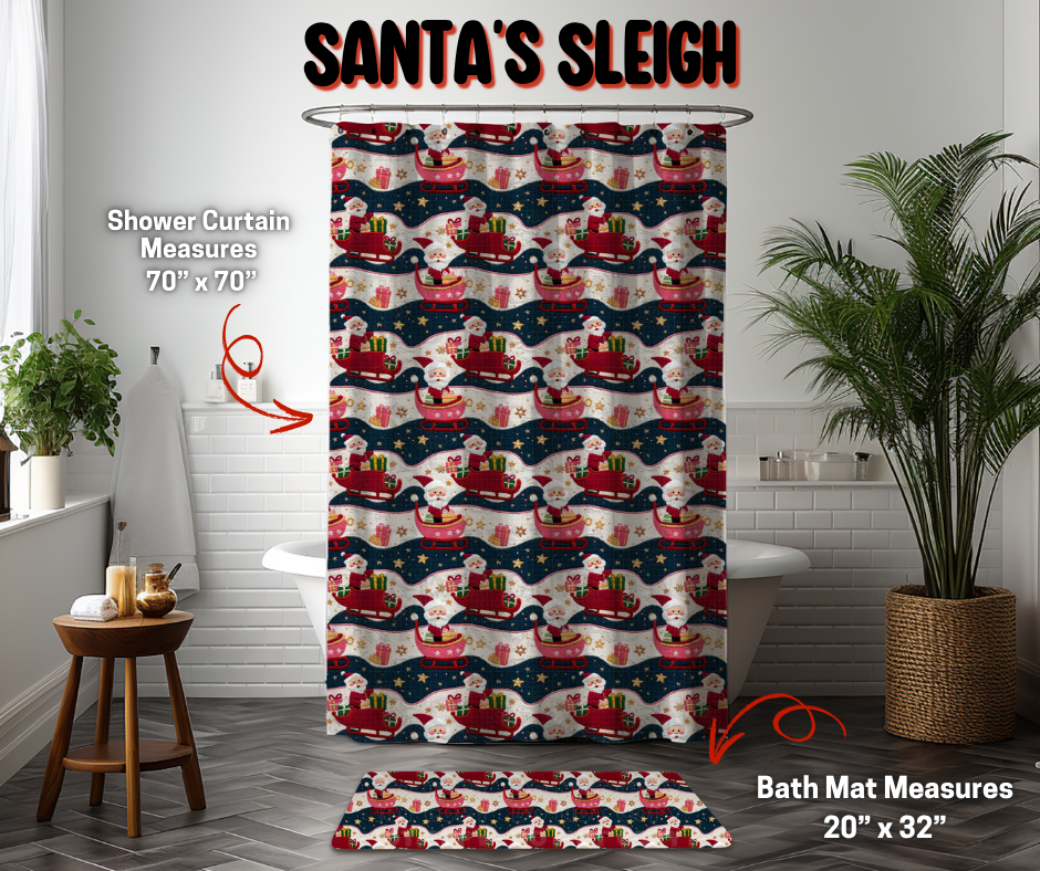 Preorder! Closes 9/8. ETA Dec. Santa's Sleigh Custom Shower Curtain and/or Bath Mat