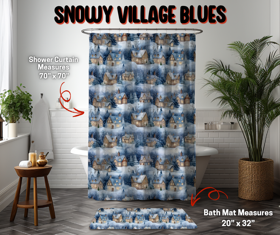 Preorder! Closes 9/8. ETA Dec. Snowy Village Blues Custom Shower Curtain and/or Bath Mat