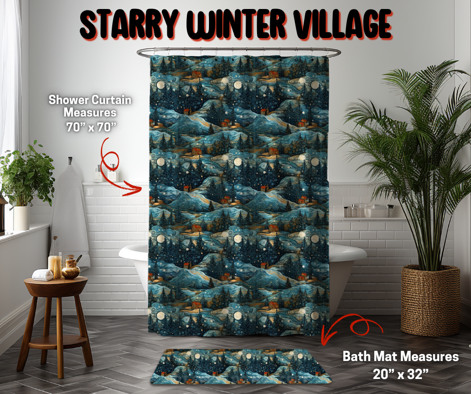 Preorder! Closes 9/8. ETA Dec. Starry Winter Village Custom Shower Curtain and/or Bath Mat