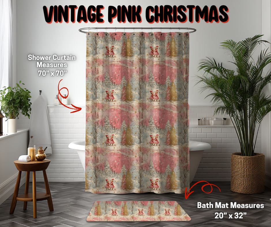 Preorder! Closes 9/8. ETA Dec. Vintage Pink Christmas Custom Shower Curtain and/or Bath Mat