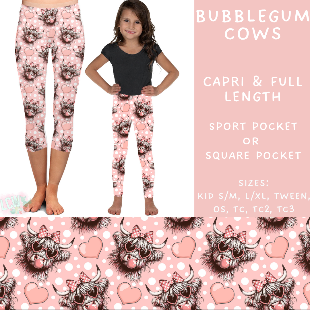 Ready To Ship - Bubblegum Cows Full and Capri Length Legging