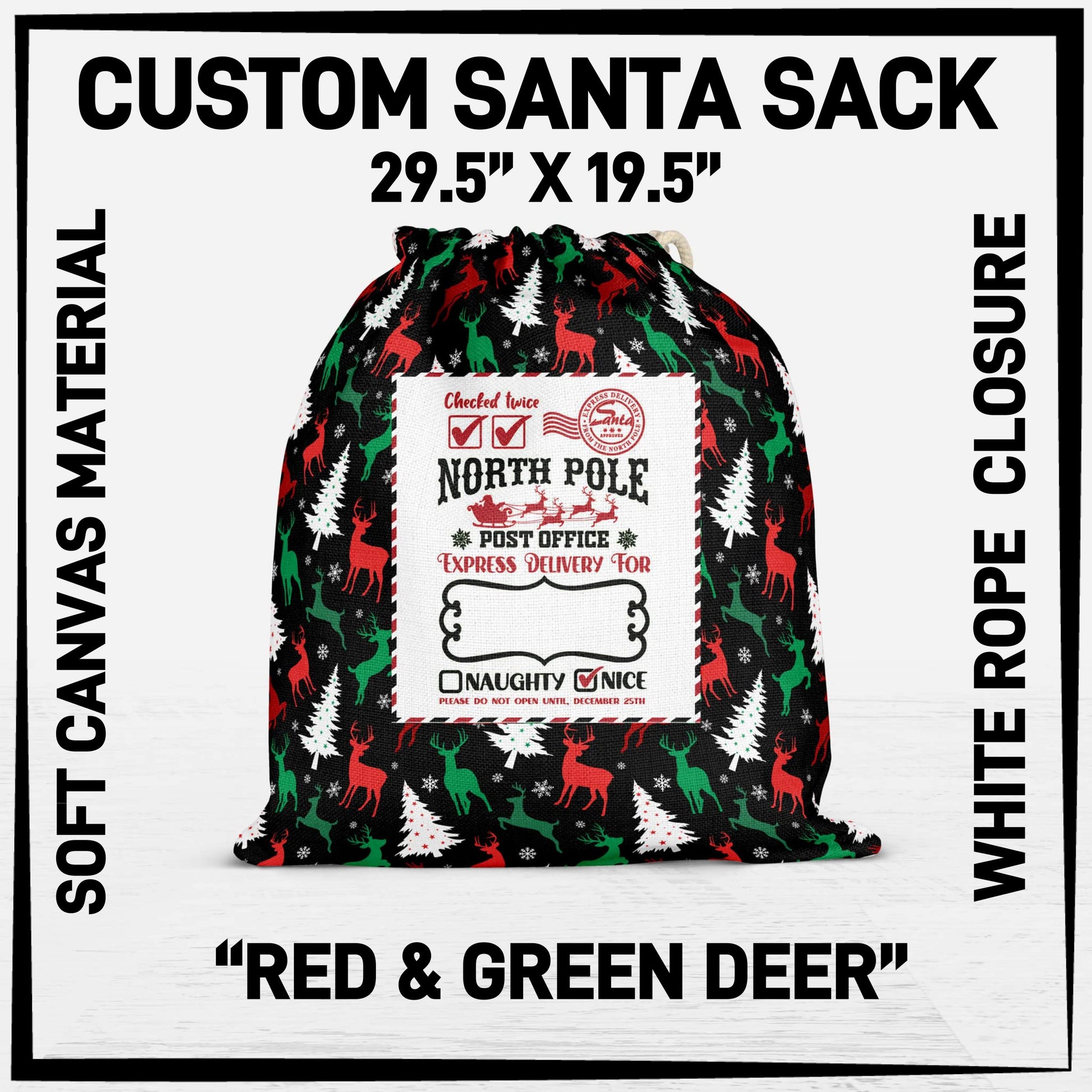 S3SK - Red & Green Deer Santa Sack - Preorder ETA: Early Nov