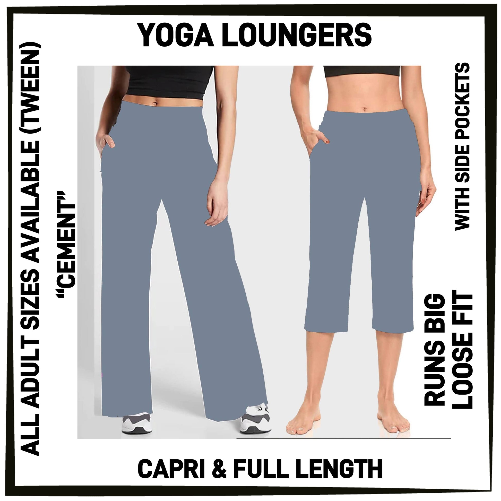YG7L - Cement Full/Capri Yoga Loungers with Pockets - Preorder ETA: Early Nov